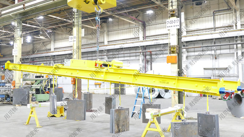 轨道车调平吊具尺寸:9 14m ×1 82m × 0 81能力: 4 5吨概述当起重机将横梁降低到轨道车顶时,调平吊具杆将在升降期间和之