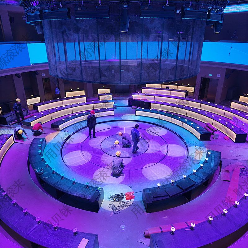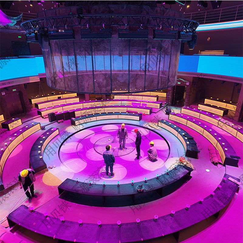 本设备专为江苏苏州地区项目量身定制,为水下专用三圈组合式升降旋转表演平台。