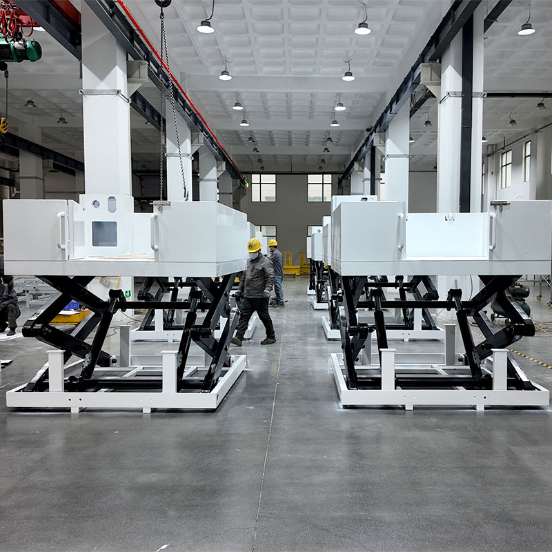 大吨位剪叉液压升降机是一款专为重型设备垂直搬运与装卸作业而设计的高强度升降平台,适用于冶金、能源、模具、汽车制造、船舶工业等对承载能力与稳定性要求极高的工况。设备采用多组高强度剪叉结构,结合大排量液压动力系统,具备出色的承载能力(单台可达20~100吨及以上)与稳定的升降性能。