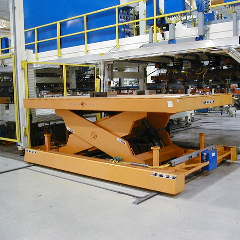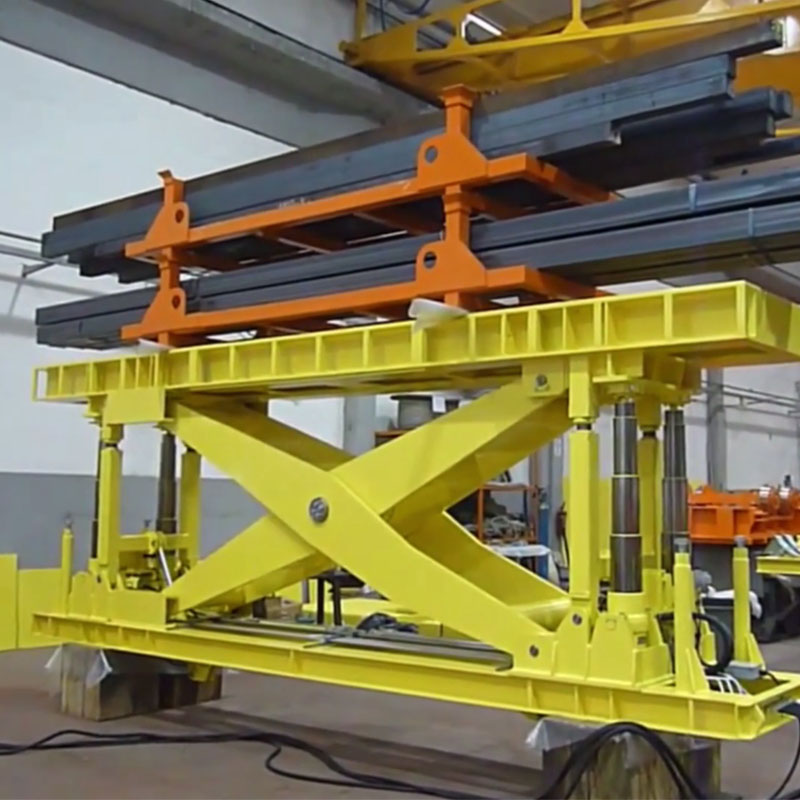 用于连续喂料钢坯的 16 吨容量串联固定剪叉升降机,是一种专为重型货物搬运设计的工业设备,主要用于生产流水线中钢坯的高度差输送