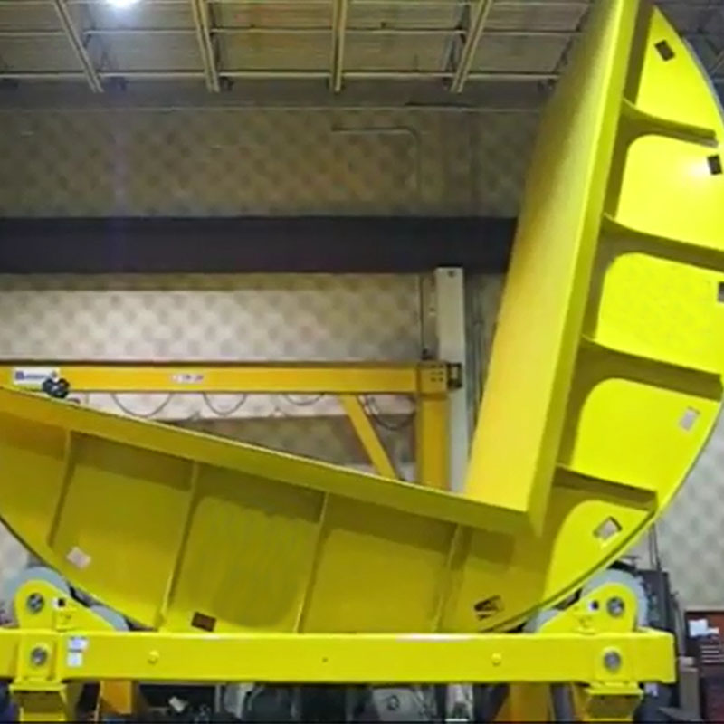 定制线圈自卸翻转平台是一种专为钢卷、铝卷、铜卷等大型卷材搬运与卸载工艺开发的专用设备,具备自动翻转、精准定位、平稳卸料等特点。该平台通过液压翻转机构将线圈从水平运输状态平稳过渡至垂直放置或指定角度,实现无吊车介入的自动下料作业,广泛应用于金属加工、仓储物流、冶金轧制等行业。