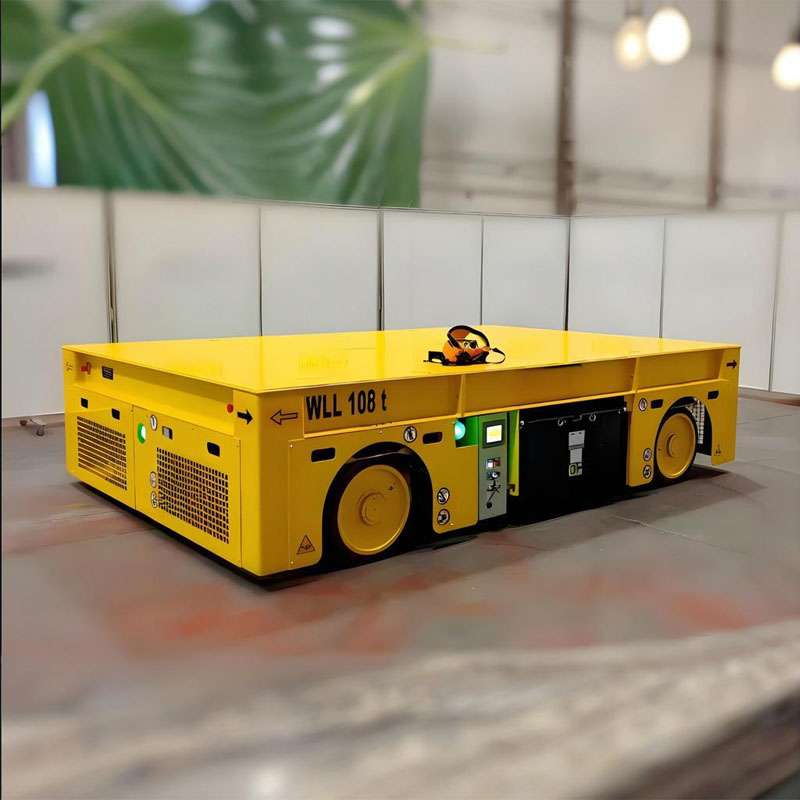这是一款专为搬运风力发电机齿轮箱而设计的电动运输车,最大载重达108吨,适用于风电制造厂房内的重型部件搬运作业。设备采用电池驱动,具备自走、自控等多项功能,可高效、安全地完成风电齿轮箱的移动和定位。