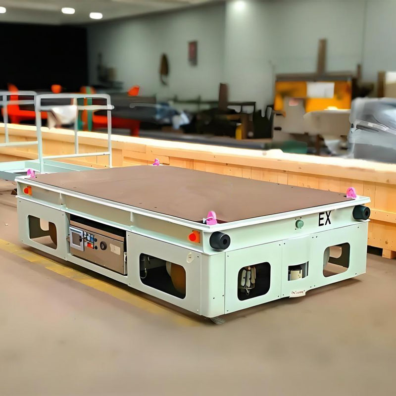 本款70 吨级自动化RGV转运车(RGV)专为重型钢板的高效、安全运输而设计,适用于钢铁厂、造船厂、大型结构件制造等重工业场景。设备具备强大的承载能力与自动化运行性能,适合在不同工序间、仓储区与生产线之间转运大尺寸钢板或平面类重物。